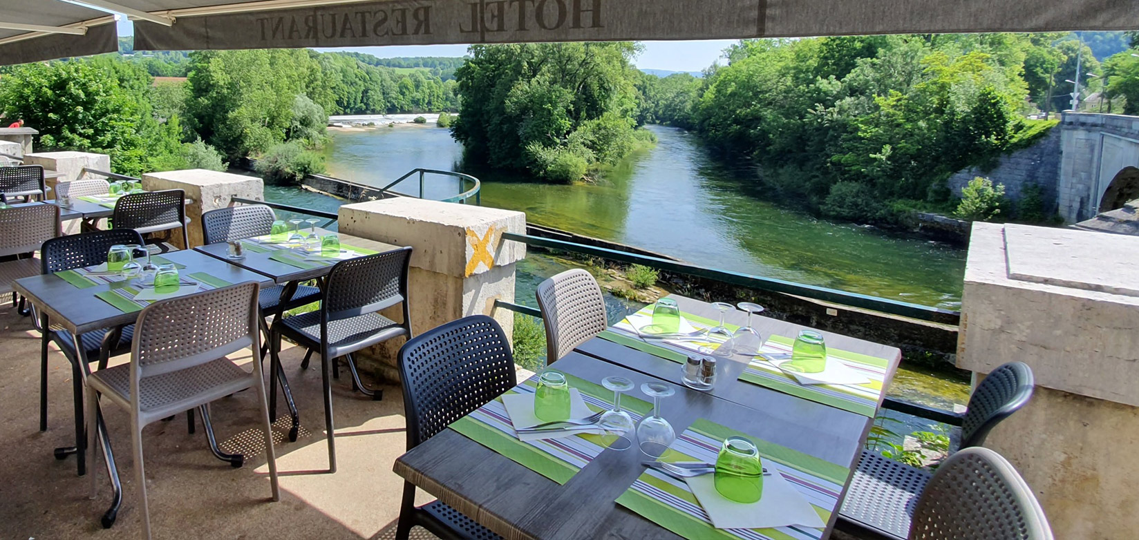 Le Restaurant Au Faisan Doré vous accueille l’hiver dans notre salle ouverte sur le parc et la rivière et en été, sur nos terrasses ombragées. Nous saurons vous faire apprécier un repas savoureux dans un cadre de verdure, près de la piscine ou encore au bord de la rivière d’Ain. Nous organisons également vos repas d’affaires, réunions de famille…